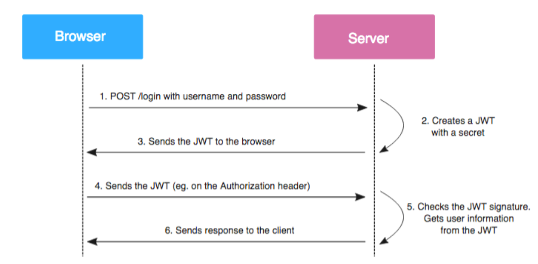 그러면 서버는 토큰을 검증해서 사용자가 맞는지, 그리고 이 토큰의 유효기간이 안지났는지 체크를 한다.